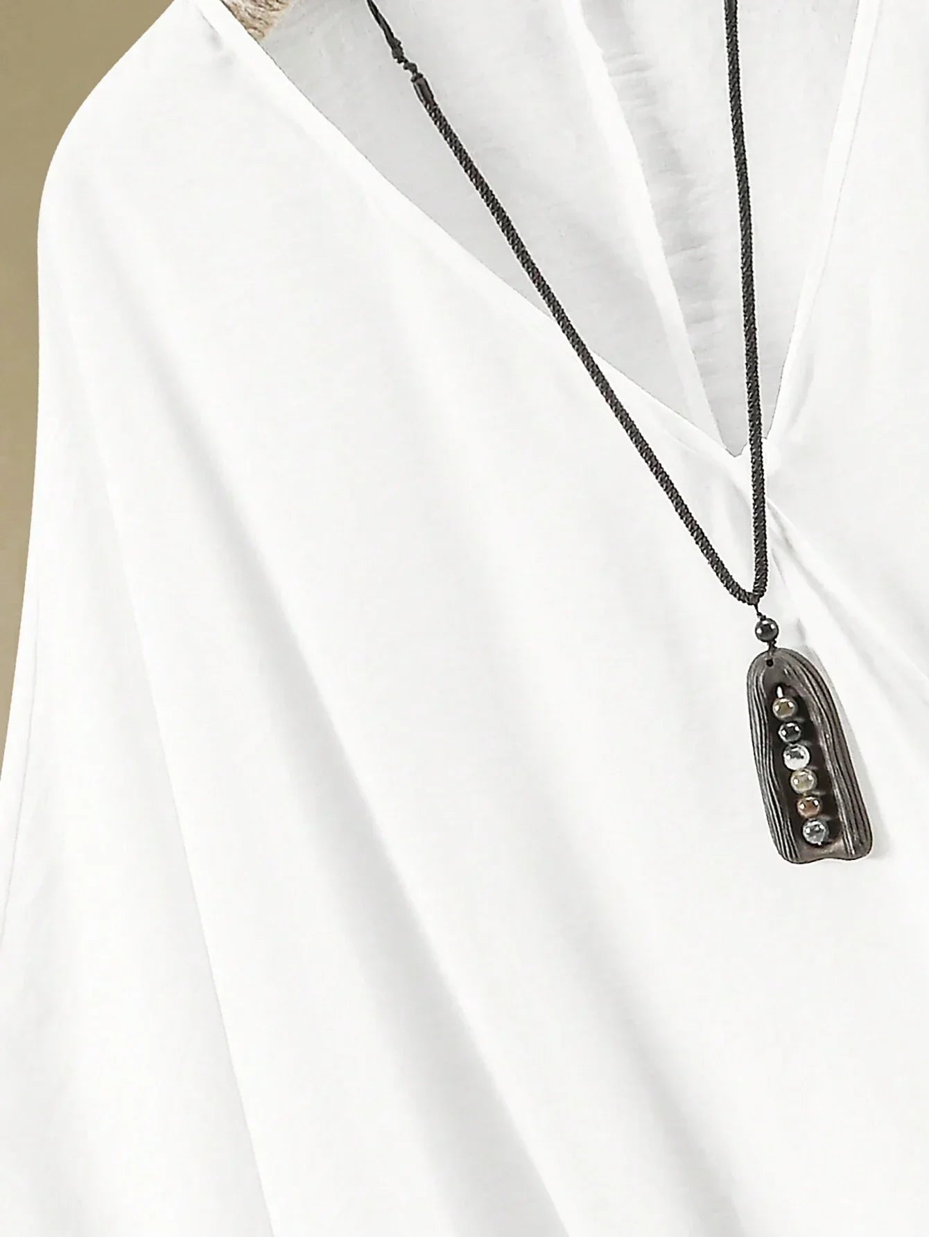 Draped Boho Top: Flowing V-neck blouse with an artful twist detail that flatters all body shapes while adding a breezy, romantic touch.